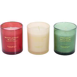 Set-holiday gift set with frozen balsam & iced sugar cookie & mistletoe magic and all are scented candles 3.5 oz